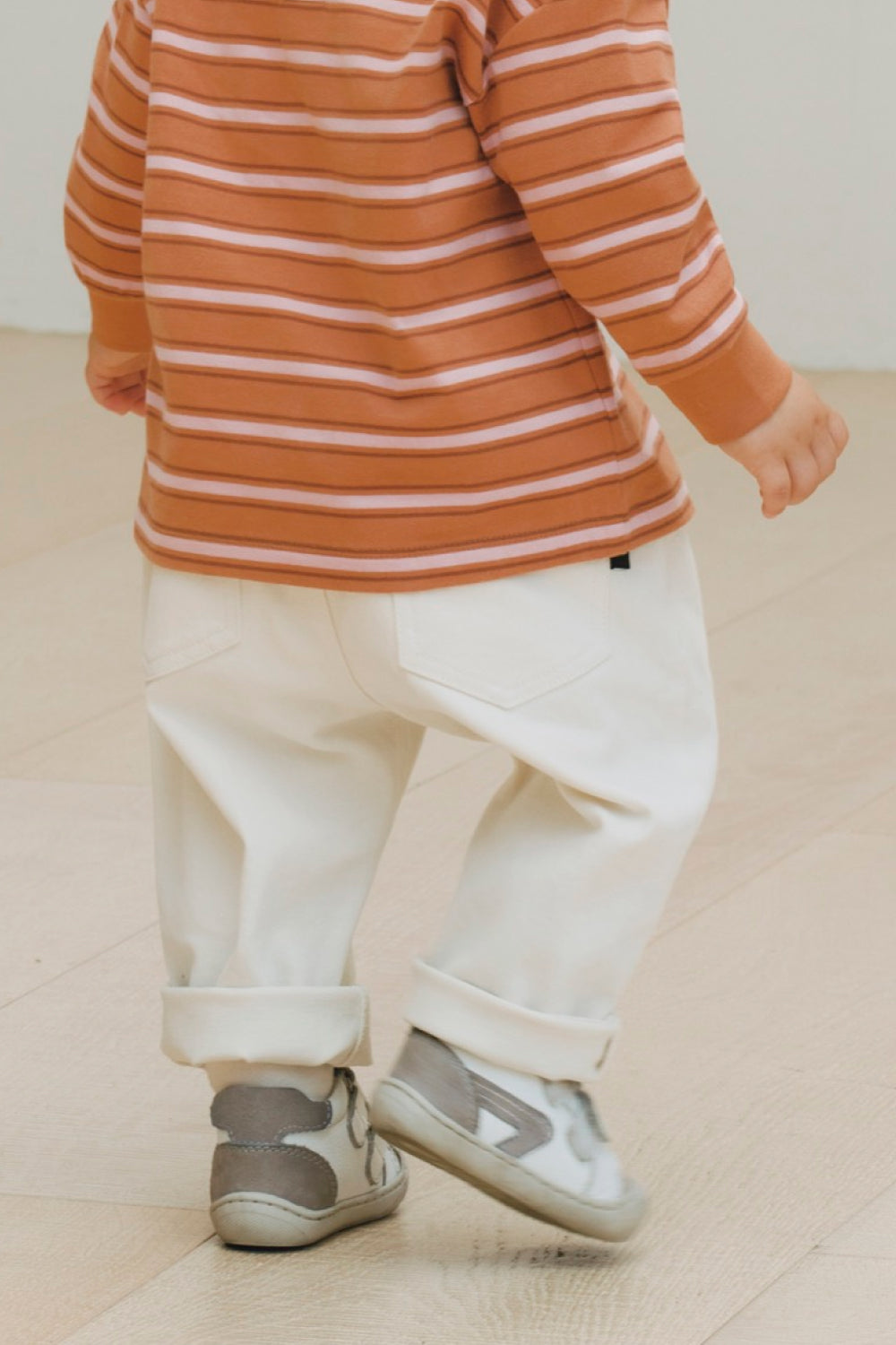 しっかりした形がゆえに、少し生地がかたいのでもう少し柔らかいと低月齢の子でも着せやすいなと思いました。