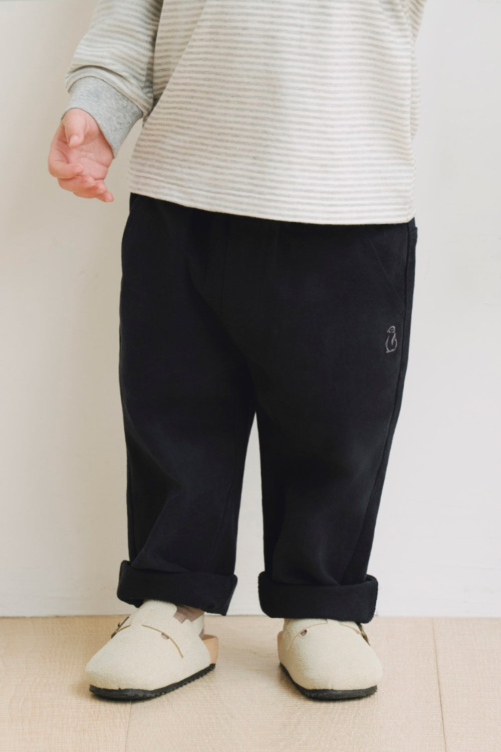 ポケット部分のペンギン刺繍でアクセントを加えました。