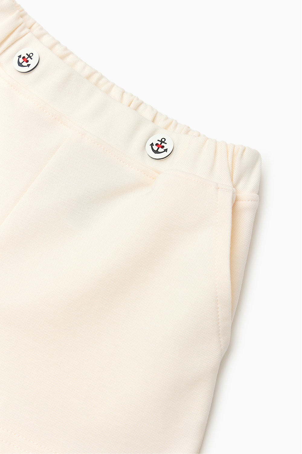 ウエストゴムのマリン風装飾ボタンもおしゃれ