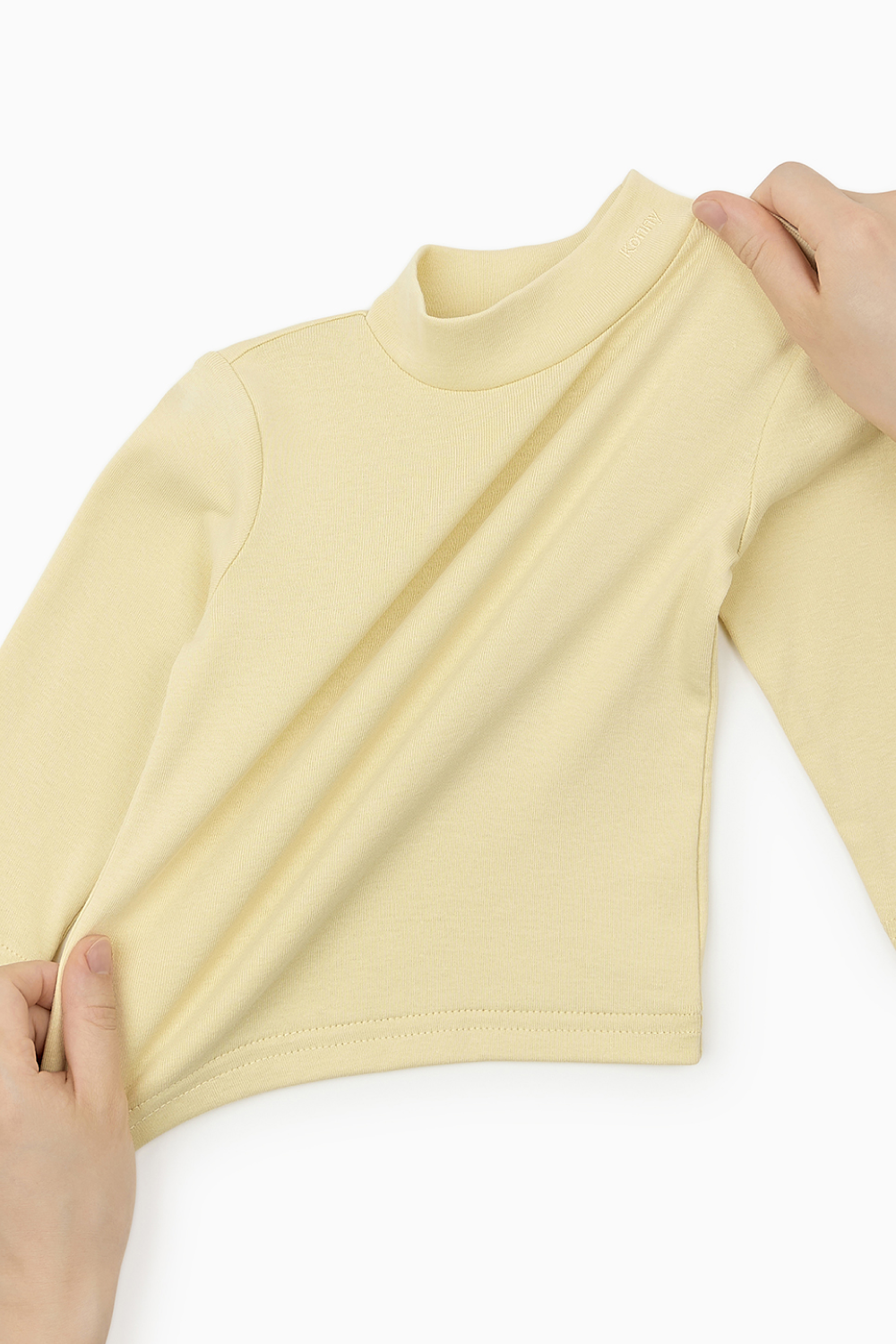締め付け感なく、首を優しく包むハーフネック